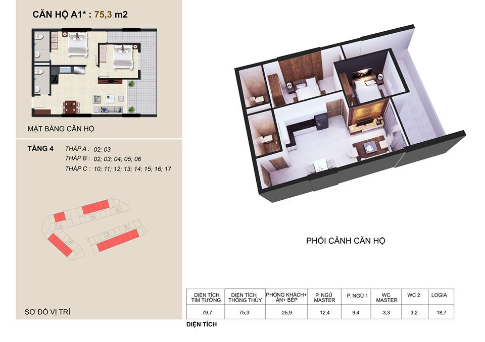 • Quy mô: 3 block với 26 tầng nổi và 1 tầng hầm