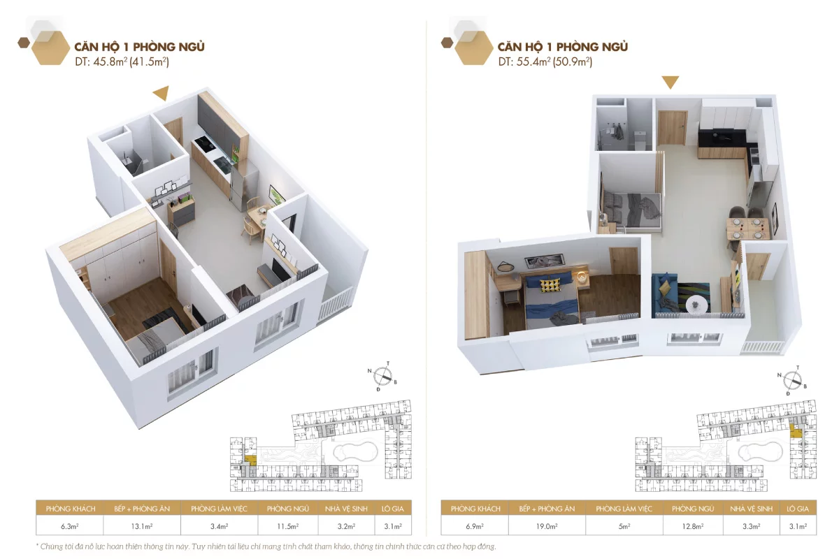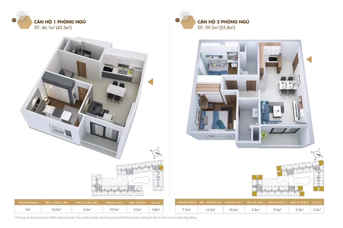 • Diện tích: Từ 33 – 90 m2