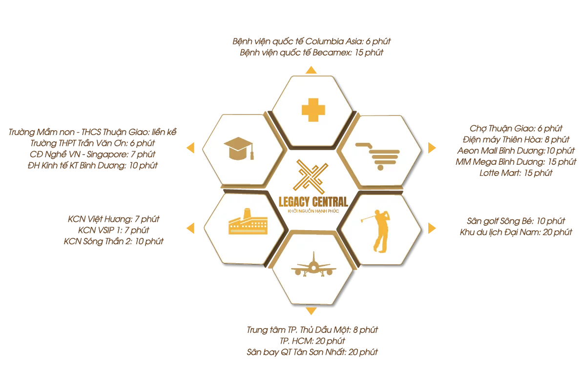 • 10 phút đến trung tâm thành phố Thủ Dầu Một