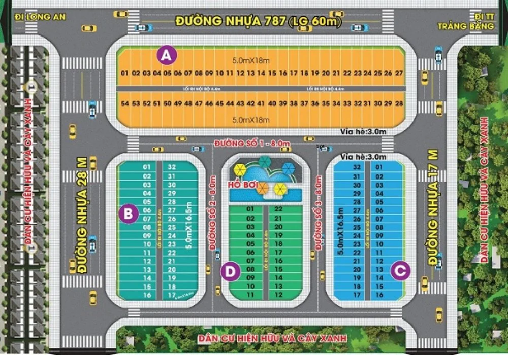 - 500m đến trung tâm thị trấn Trảng Bàng