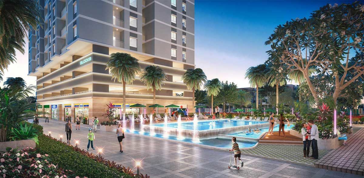 - Hồ bơi thiết kế theo phong cách resort đem lại không gian vui chơi, tận hưởng phút giây sảng khoái và mát lạnh