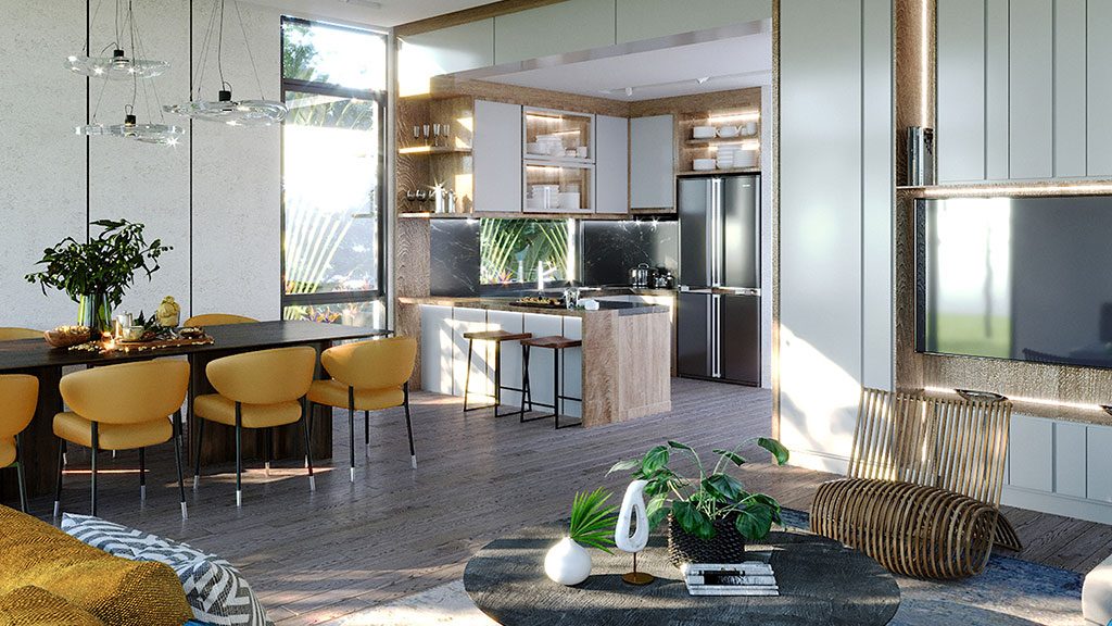 Chất mộc trong thế kế nội thất biệt thự The Tropicana Novaland. Những gam màu trắng tình khôi hay vàng pastel vui tươi, trẻ trung, thoáng mát trở thành màu sắc chủ đạo của những ngôi biệt thự biển hiện đại. Từng vật dụng trong toàn bộ ngôi biệt thự đều sử dụng tối đa các vật liệu tự nhiên như gỗ, đã, mây tre đan. Mang đến sự thân thiện quen thuộc với thiên nhiên; nhưng vấn đảm bảo tính hiện đại đẳng cấp cho các căn biệt thự.